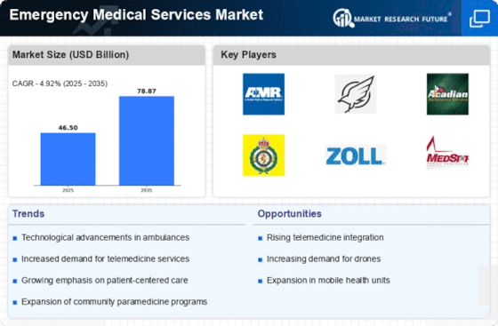 The Emergency Medical Services Market Developments include new ambulance technologies, mobile healthcare units, and digital tracking systems. The Emergency Medical Services Market Top Companies and service providers are focusing on expanding their capabilities and improving response efficiency. The Emergency Medical Services Market Growth Dynamics are driven by technological advancements, increasing demand, and government initiatives. The Emergency Medical Services Market Projections indicate strong future growth as emergency care systems become more advanced and accessible.