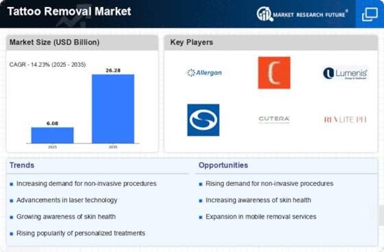 The Tattoo Removal Market Developments include the introduction of new laser technologies, expansion of specialized clinics, and improved training for practitioners. The Tattoo Removal Market Top Companies are focusing on innovation, quality, and customer satisfaction. The Tattoo Removal Market Growth Dynamics are driven by technological progress, increasing demand, and rising awareness about aesthetic treatments. The Tattoo Removal Market Projections indicate strong long-term growth as more individuals opt for safe and effective tattoo removal solutions.